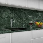 Tutti i piani cucina e le alzate in marmo Verde Guatemala vengono sottoposti a trattamenti idro-oleo repellenti e antimacchia con certificazione alimentare, studiati per aumentare la resistenza al contatto con sostanze potenzialmente macchianti come cibi, liquidi o detergenti comunemente utilizzati in cucina.